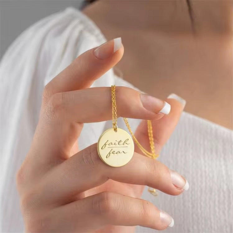 ✔️ Inspirational “Faith Over Fear” engraved pendant